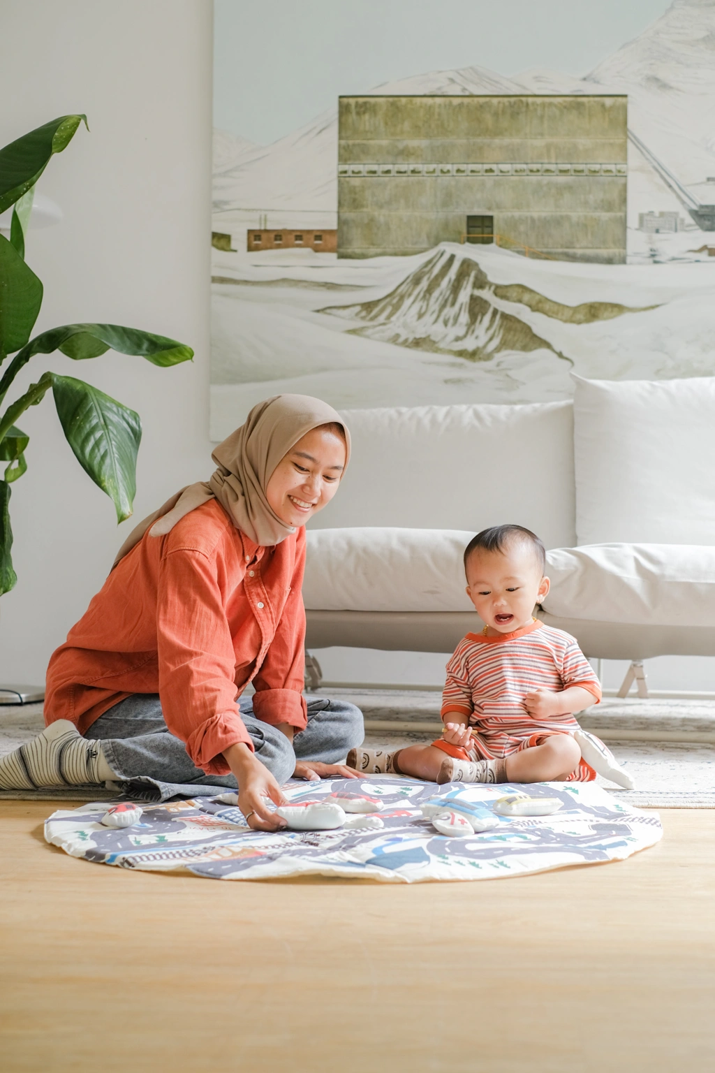Jangan khawatir! Ada banyak mainan yang bisa jadi alternatif asah daya imajinasi anak, seperti permainan kreatif menggunakan Playmat Series City Road dari foxandbunny. Alas duduk sekaligus bermain ini dilengkapi 10 biduk jadi bisa share to play. Ajak si kecil bermain bersama, atau bisa bermain dengan teman sebaya.